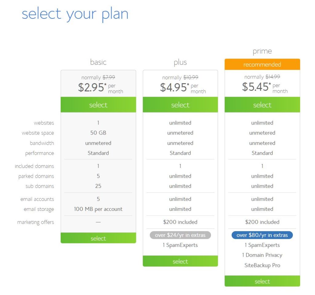 Step 1.5: choose a plan. Basic will do just fine, although “prime” is a good deal if you value the extra options. Domain Privacy is an important one, available separately for $0.99 per month even if you don’t get the prime package.