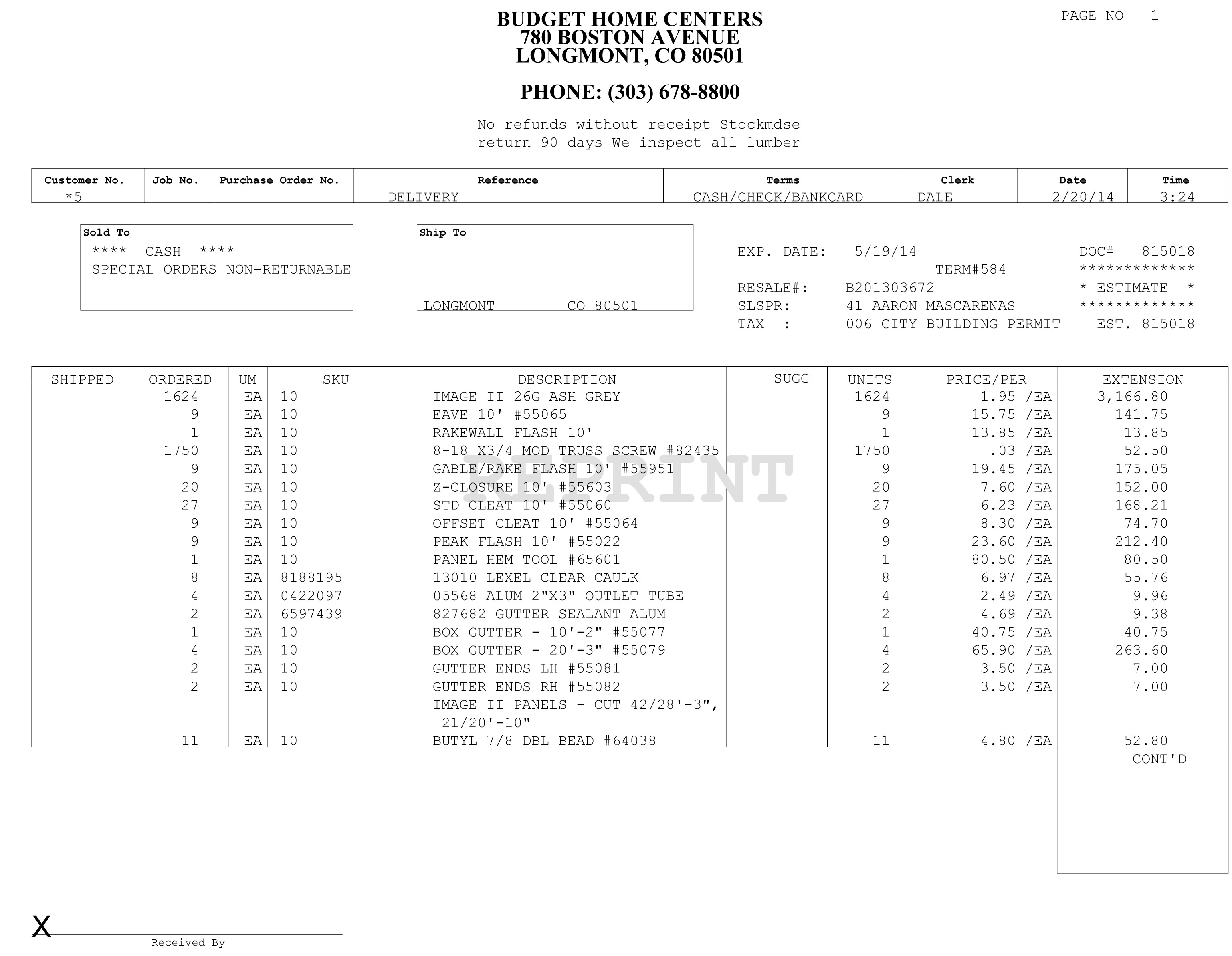 Let’s take a look at my quote from MSI, so you can see the details in action. Note that my 1500 square foot house has a 2100 square foot roof, because of the large overhangs.
