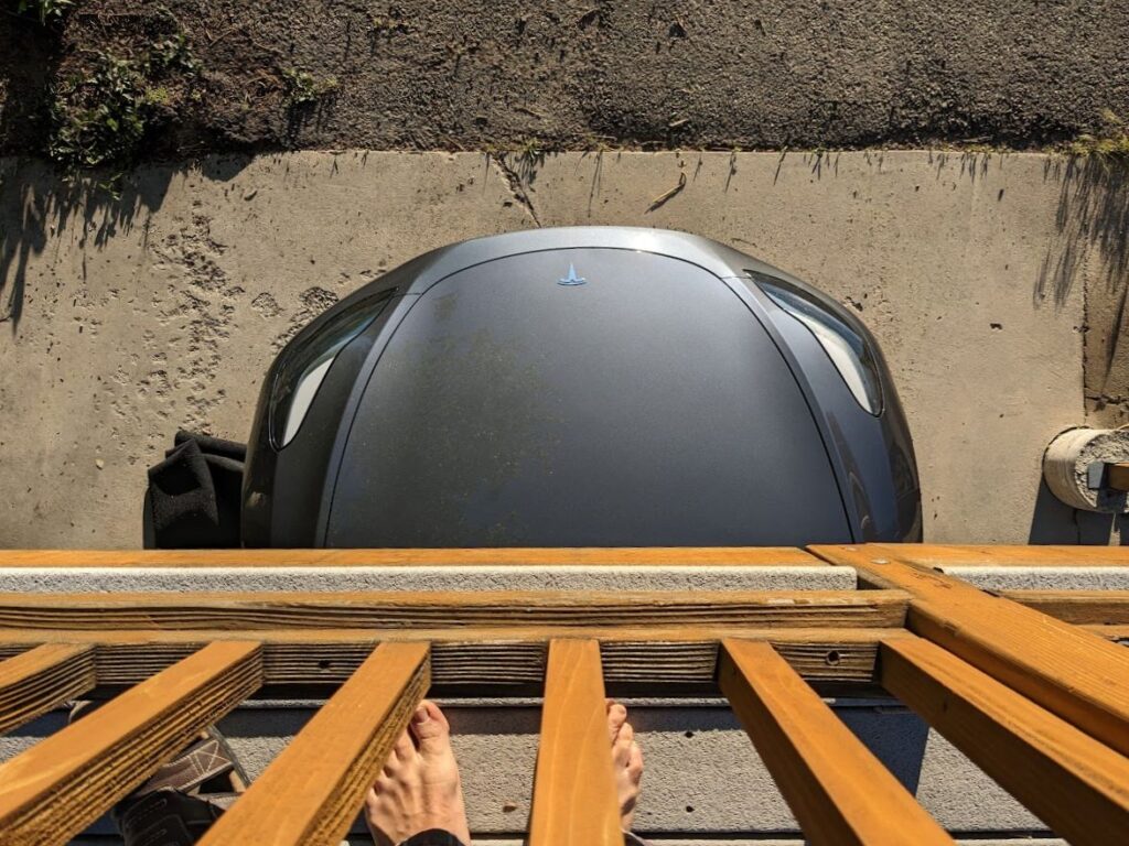 I was hoping this car would be okay for sleeping in a pinch, but it turns out it is more than okay – it’s fantastic. Because of this, I have already spent about 30 nights camped out in all sorts of locales, sleeping in the cozy, flat, 6-foot long passenger and cargo area (the rear seats fold totally flat). And the glass roof makes for a very scenic moon viewing as you fall asleep, and nice views of the trees when you wake up in the morning.